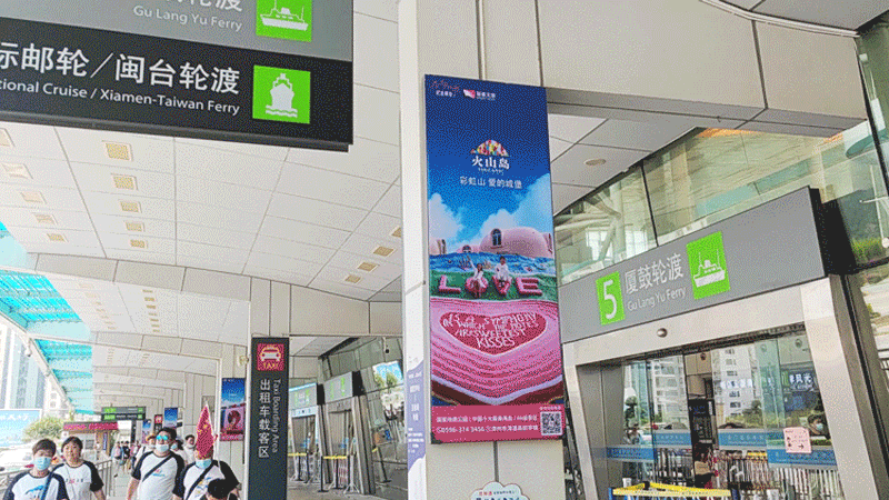 火山島風(fēng)景區(qū)在五一小長假來臨前10天,為了抓住來廈旅游的全國游客的眼球,匹配定位精準(zhǔn)的全國游客人群,與天藝傳媒合作,在廈門國際郵輪中心以24幅不同的火山島風(fēng)景圖作為展現(xiàn)。